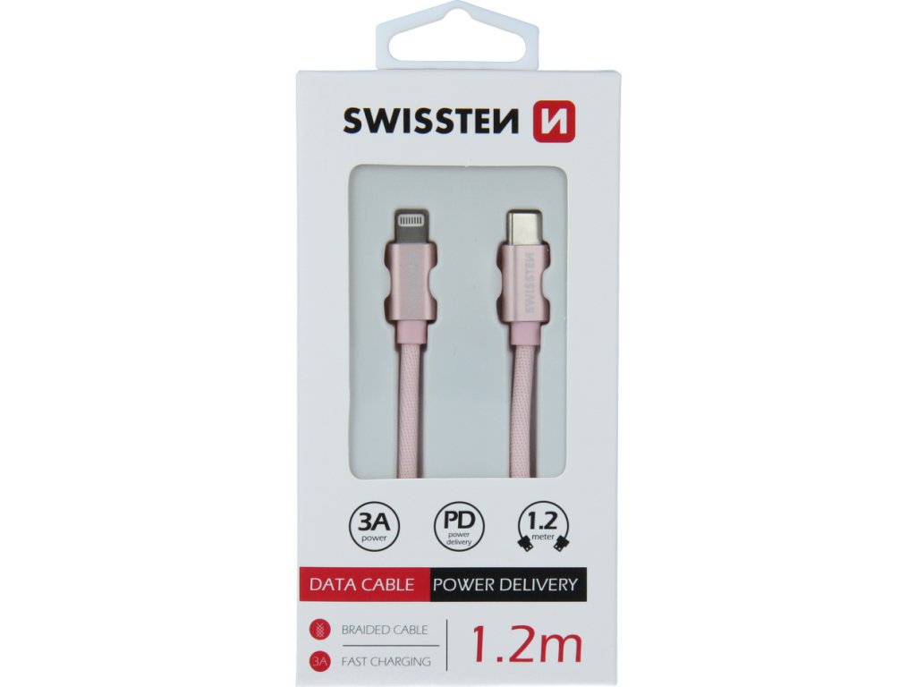 DÁTOVÝ KÁBEL SWISSTEN TEXTILE USB-C / LIGHTNING 1,2 M RUŽOVO/ZLATÝ