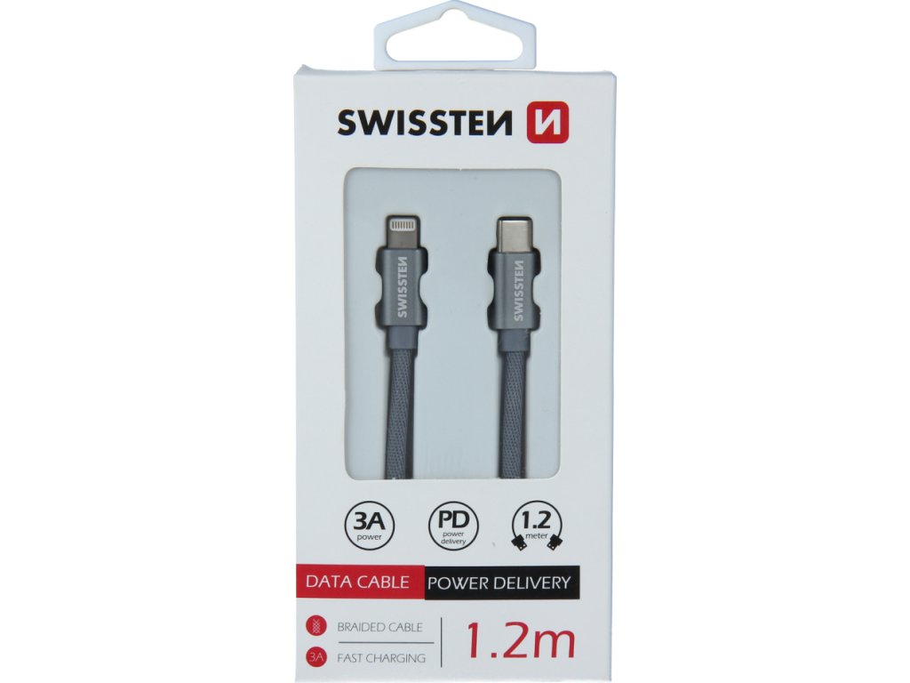 DÁTOVÝ KÁBEL SWISSTEN TEXTILE USB-C / LIGHTNING 1,2 M ŠEDÝ