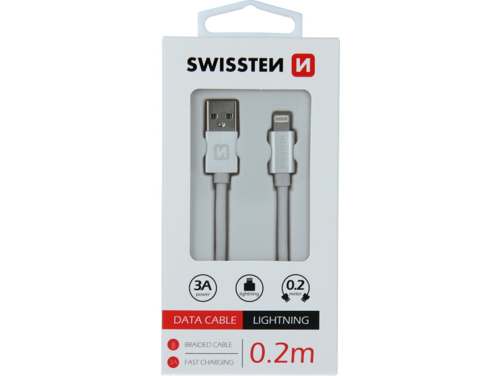DÁTOVÝ KÁBEL SWISSTEN TEXTILE USB / LIGHTNING 0,2 M STRIEBORNÝ