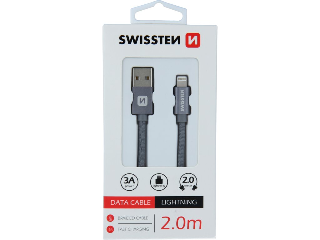 DÁTOVÝ KÁBEL SWISSTEN TEXTILE USB / LIGHTNING 2,0 M ŠEDÝ