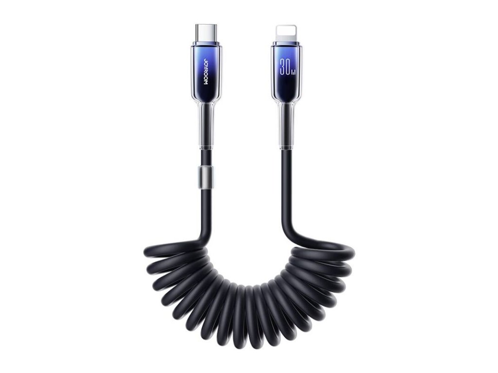 Joyroom S-A43 Crystal-Clear Series 30W USB-C - Lightning spirálový kabel 1,5 m - černý