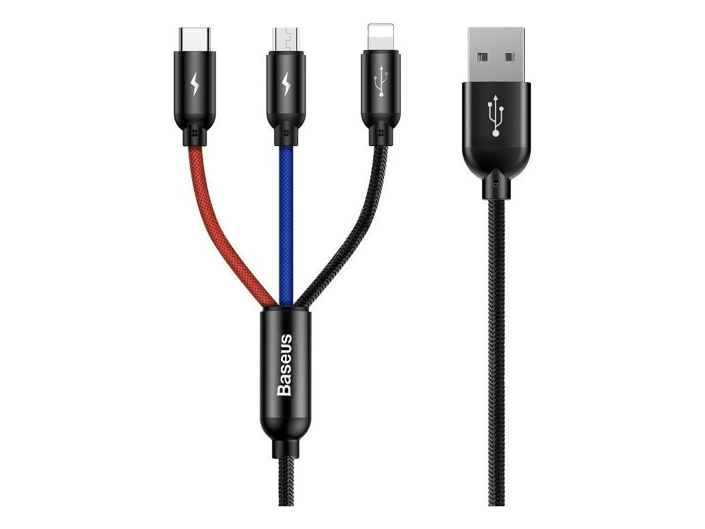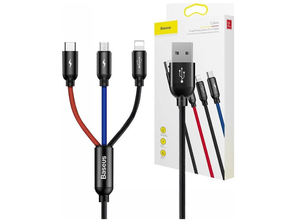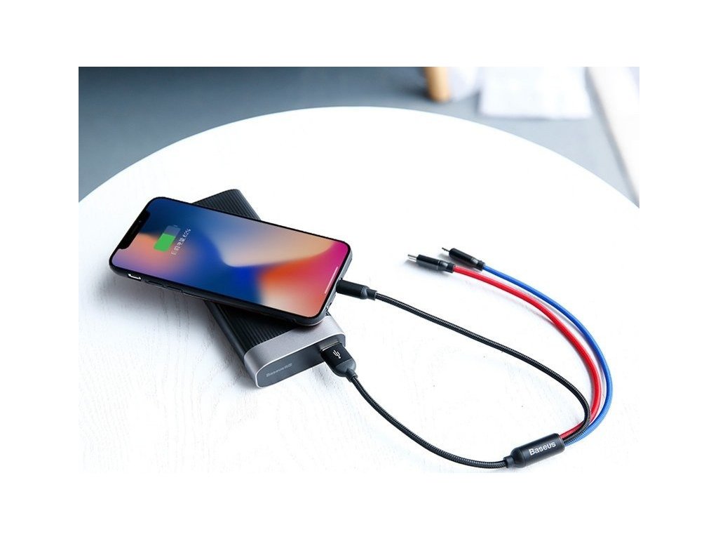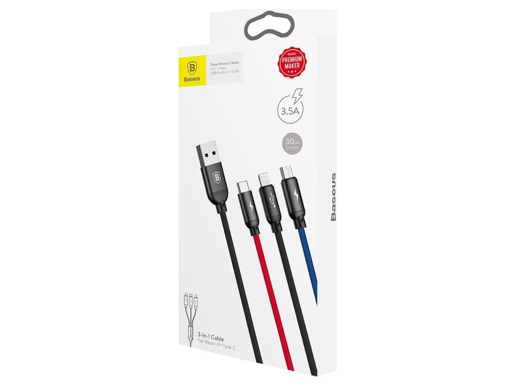 Kábel Baseus 3v1 USB-C / Lightning / Micro 3,5 A 0,3 m - čierny