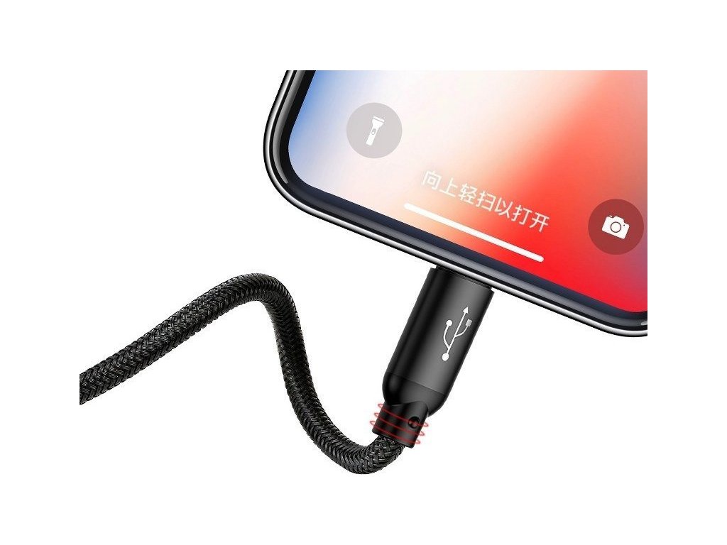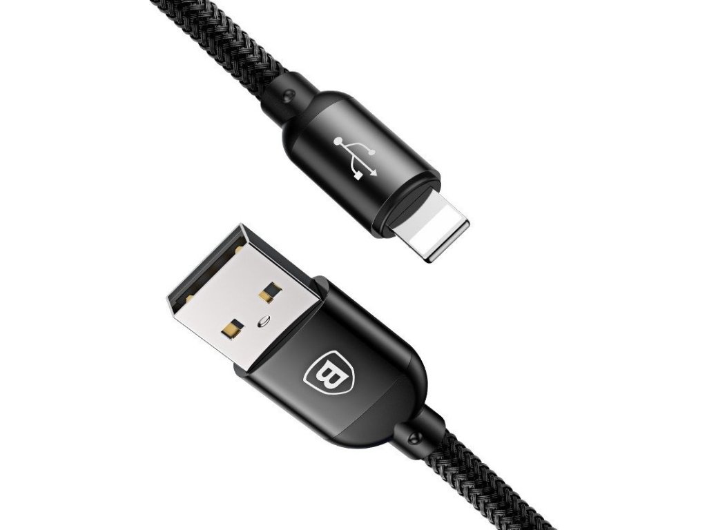 Kábel Baseus Glimmer 2m USB na Lightning (čierny) Teraz môžete behom okamihu zapnúť svoj iPhone a prenášať akékoľvek súbory rýchlosťou až 480 Mb/s.