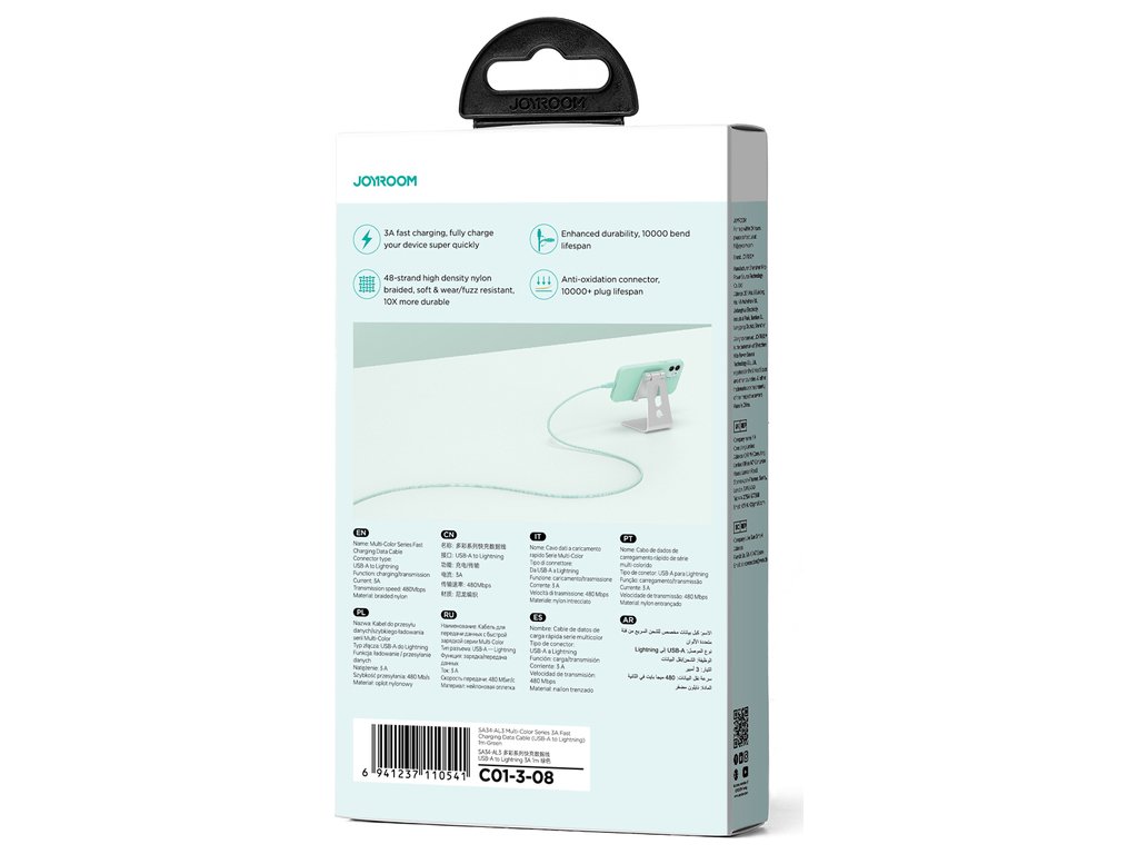Už nemusíte premýšľať o tom, koľkokrát kábel ohýbate alebo navíjate. Kábel Joyroom Multi-Color Series S-A34 má životnosť pôsobivých 10 000 ohybov. To znamená, že vám bude slúžiť naozaj dlho. Zástrčky boli vystužené dodatočnou ochrannou vrstvou, ktorá zaisťuje, že nehrdzavejú.