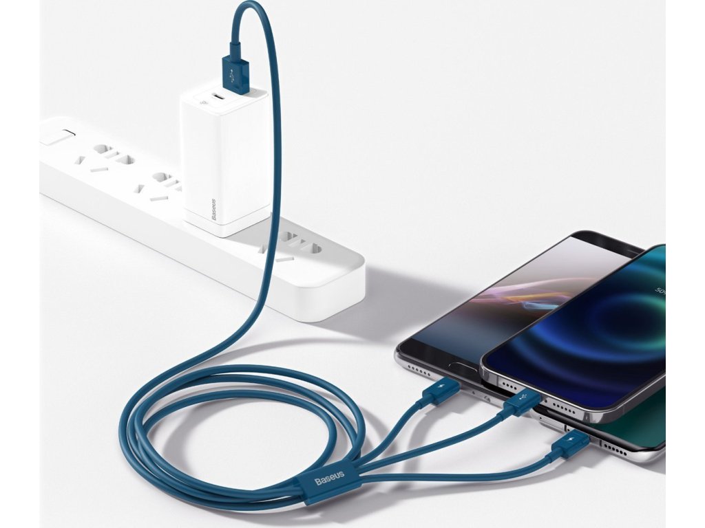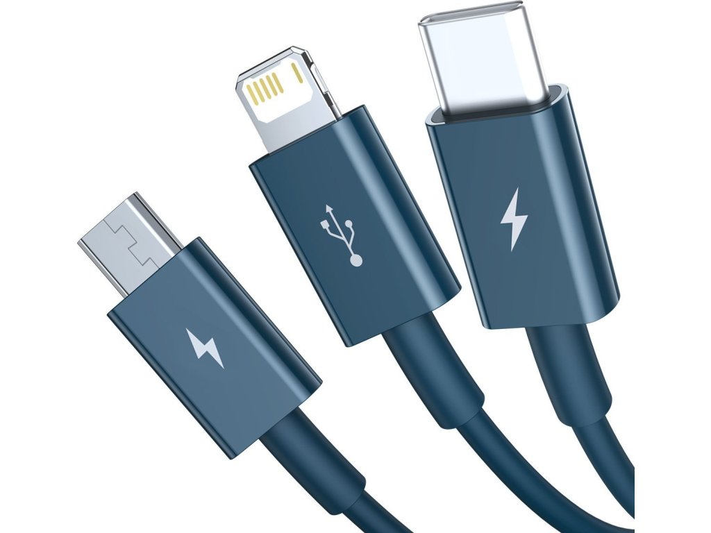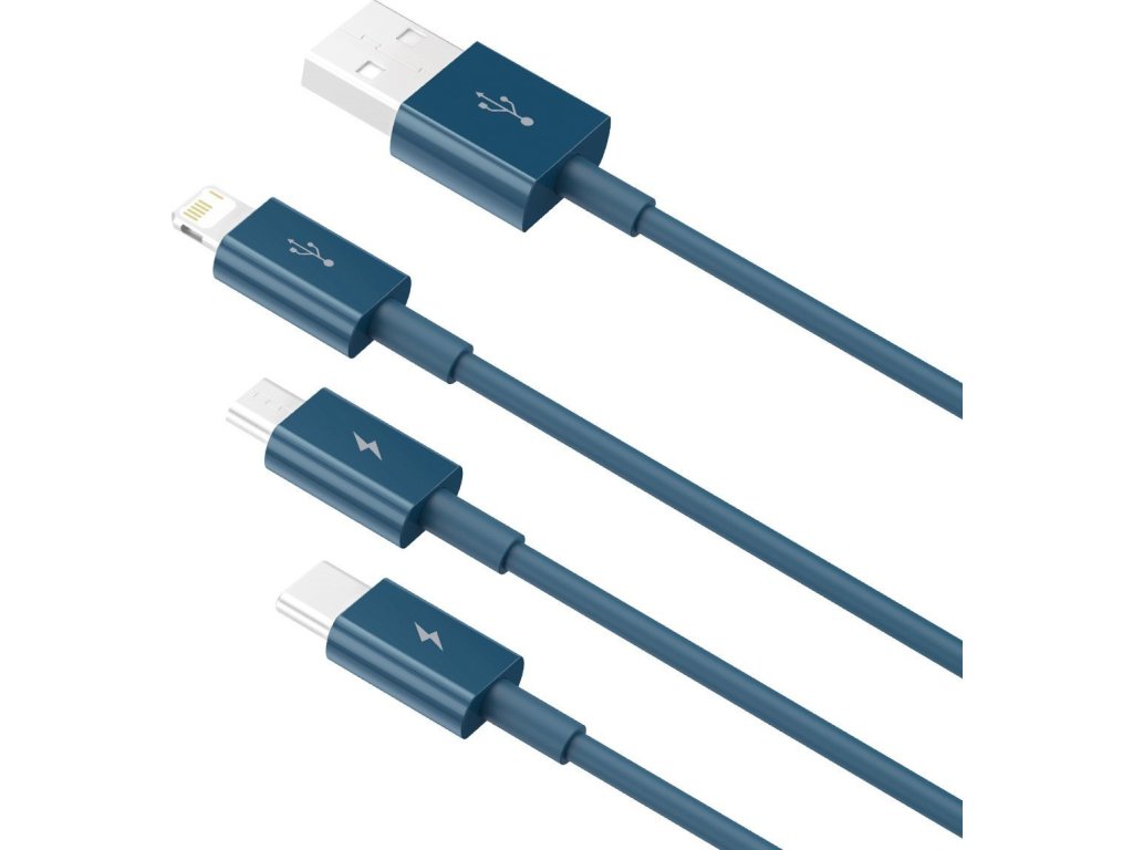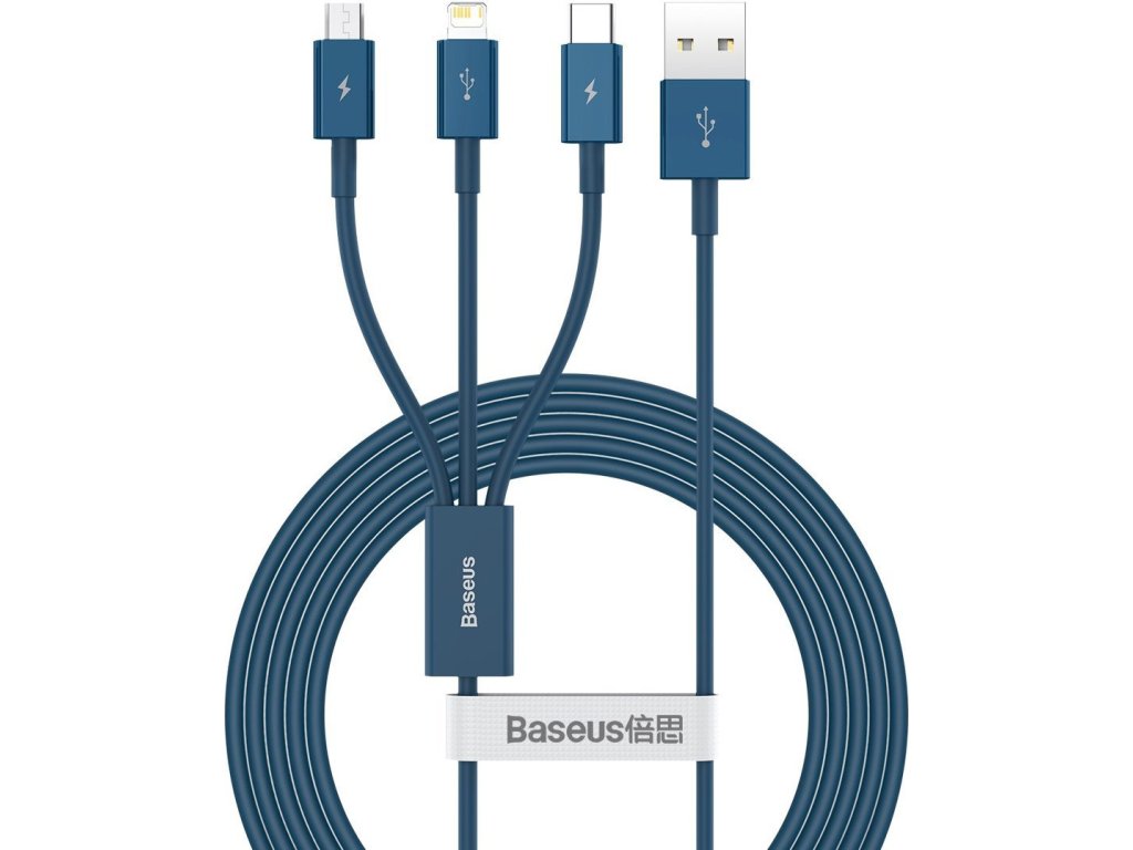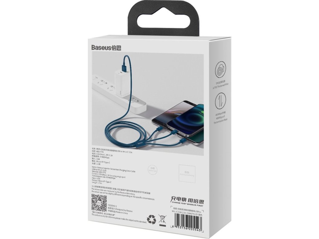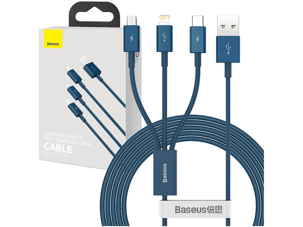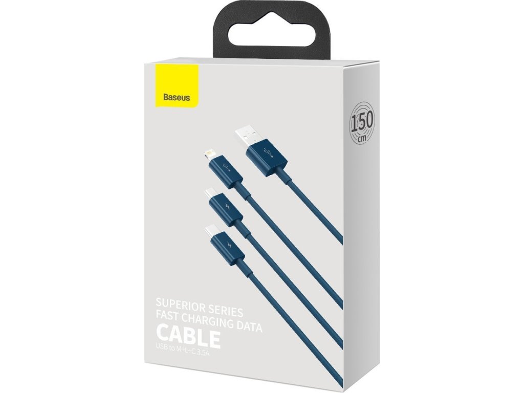 Kábel USB 3v1 Baseus Superior Series, USB na micro USB/USB-C/Lightning, 3,5 A, 1,5 m (modrý)