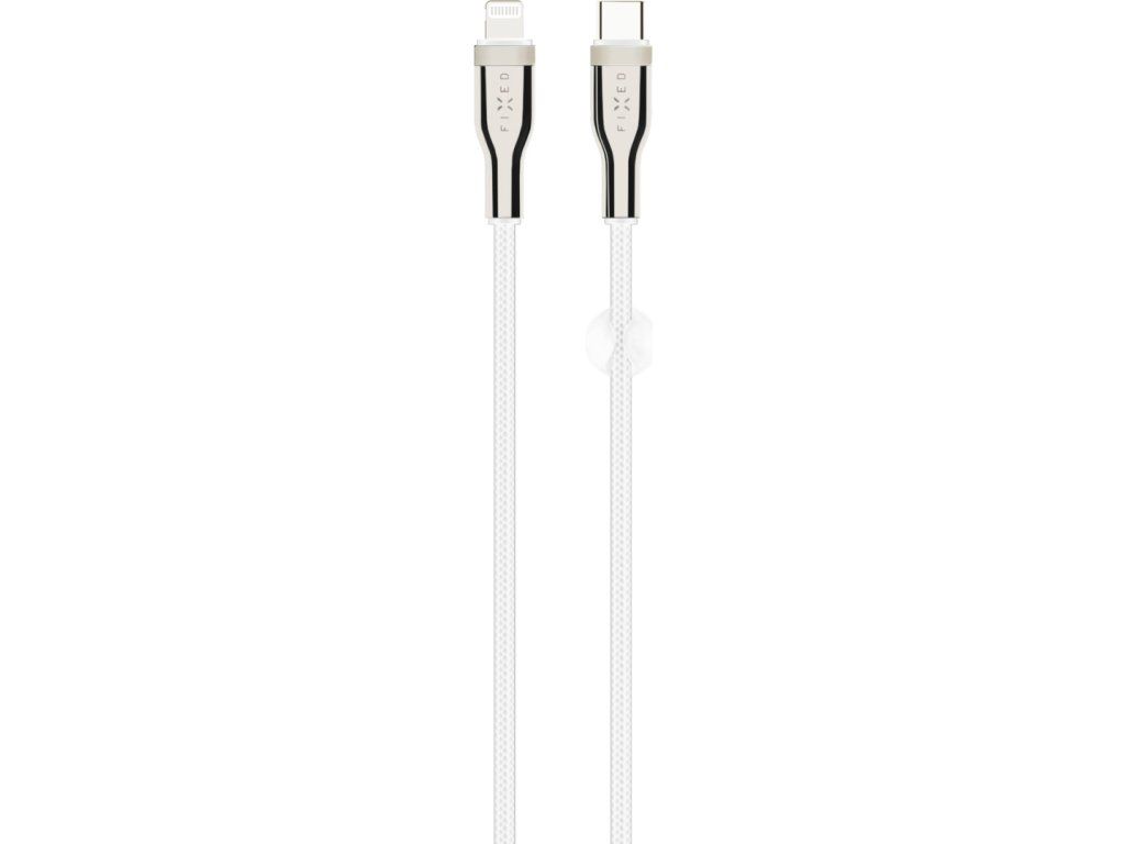 Nabíjací a dátový opletený kábel FIXED s konektormi USB-C/Lightning a podporou PD, 1.2 m, MFI, biely