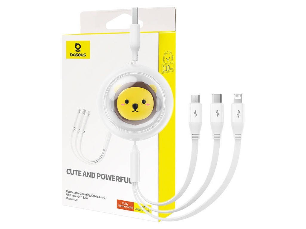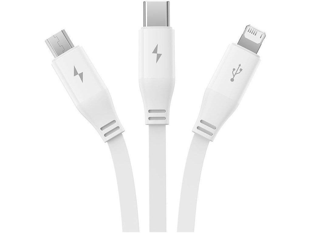 Nabíjací kábel 3w1 Baseus USB na USB-C, USB-M, Lightning 3,5 A, 1,1 m (biely)