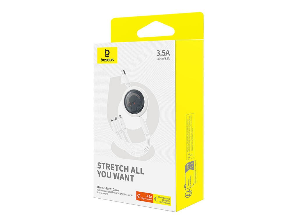 Rýchlonabíjací kábel 3v1 Baseus Free2Draw, USB na micro USB+USB-C+Lightning, 3,5 A, 1,1 m (biely)