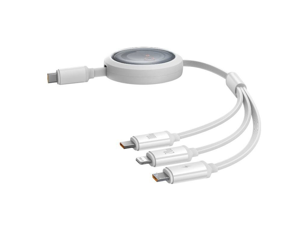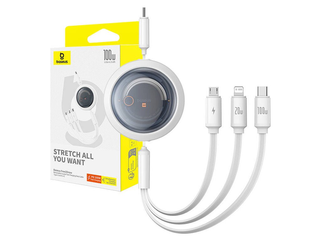 Rýchlonabíjací kábel 3v1 Baseus Free2Draw USB-C na USB-C/Lightning/Micro 100W, 1,1 m (biely)