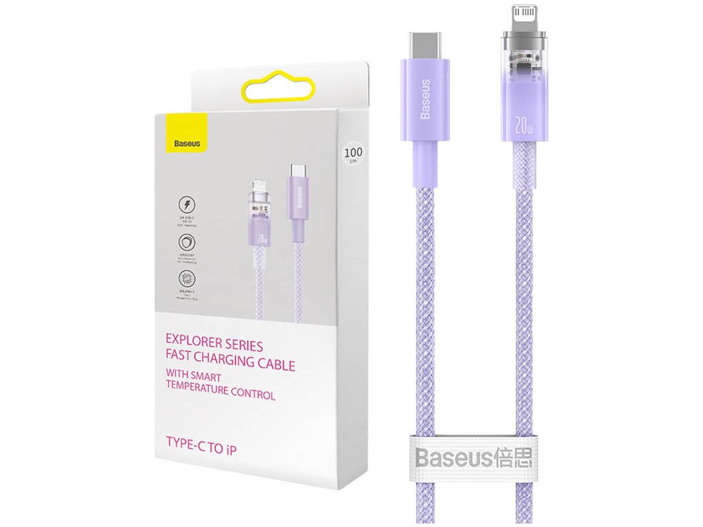 Baseus USB-C na Lightning Explorer Series rýchlonabíjací kábel 1m, 20W (fialový)