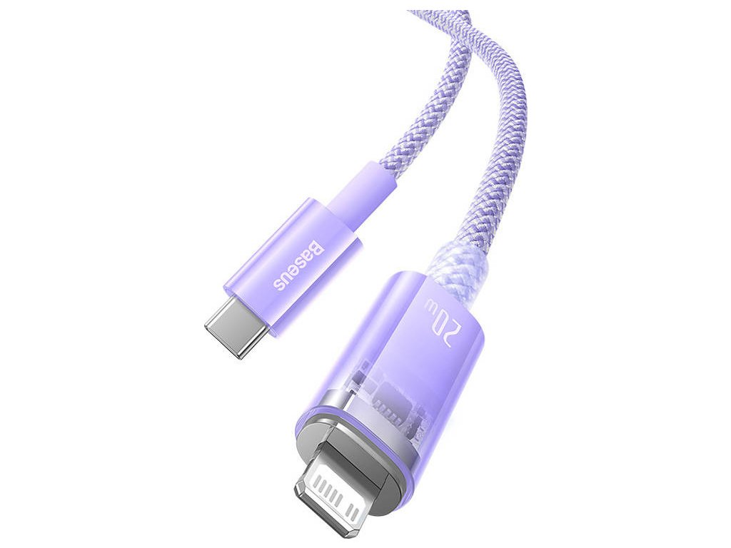 Rýchlonabíjací kábel Baseus USB-C na Lightning Explorer Series 1m, 20W (fialový)