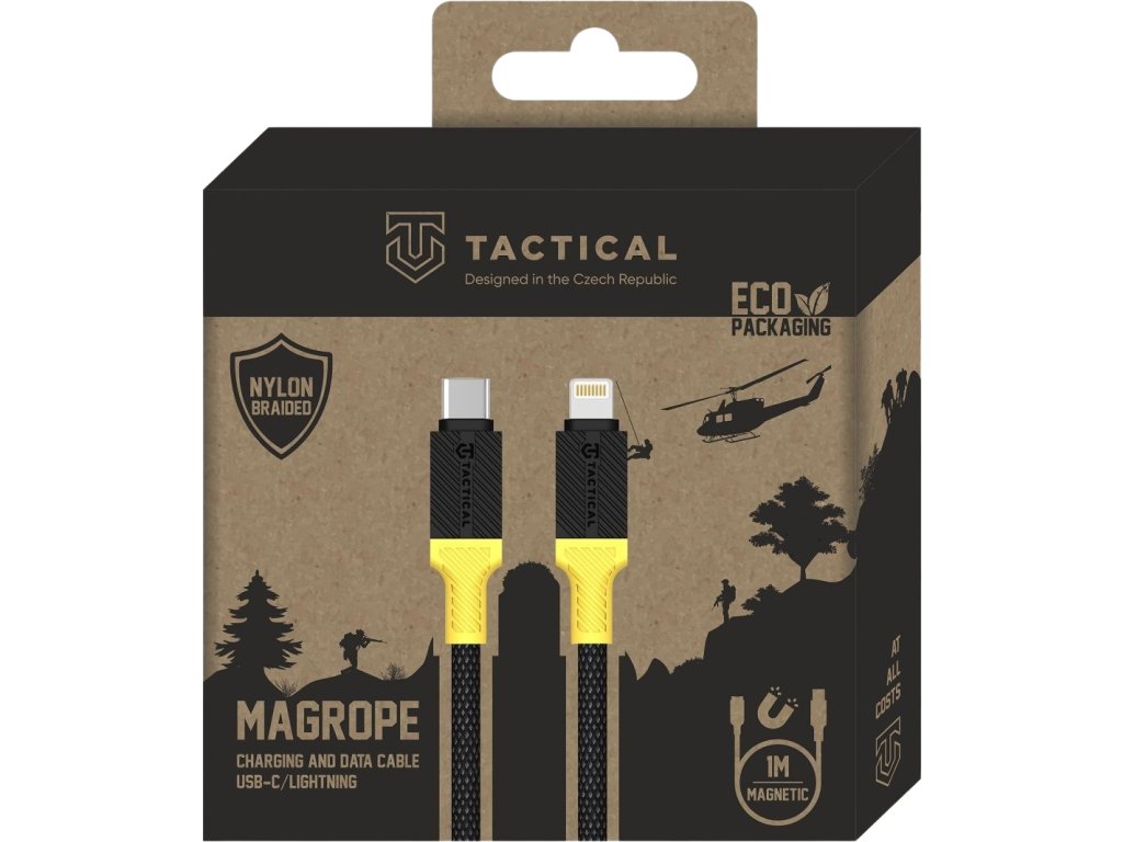 Originál z dielne Tactical. Uzamknuté, pripravené na akciu-Tactical MagRope, nabíjací kábel navrhnutý pre tých, ktorí sa neradi motajú. Či už si na ceste, v teréne alebo v divočine, tento 1metrový magnetický kábel zvládne čokoľvek, čo mu hodíte pod nohy. MAGNETICKÁ MÁGIA BEZ ZAMOTANIA Zabudni na uzly a neporiadok. Magnetická funkcia MagRope udržuje kábel zmotaný v dokonalom kruhu, uzamknutý a pripravený na použitie. Už žiadne zápasenie so zamotaným káblom – vždy zostane pevný, organizovaný a pripravený na akciu. ODOLNOSŤ PRIPOJENIA Navrhnutý rukopisom odolnosti v dielni Tactical. Vyrobený z robustných konektorov, zaisťujúcich bezpečné pripojenie a odolnosť pri každom použití. Tactical MagRope je opletený balistickým nylonom, dostatočne odolným, aby prežil akýkoľvek terén. KDEKOĽVEK Ideálny kábel do auta alebo pre pracovnú základňu. Tactical MagRope zostane tam, kde ho potrebuješ – bez zamotania, bez starostí. Pripevni ho na kovový múr alebo palubnú dosku a vždy bude uzamknutý a pripravený na tvoju ďalšiu misiu. NEODOLATEĽNE ODOLNÝ Tento kúsok nie je len pre parádu. U nás v Tactical dbáme na to, aby veci niečo vydržali. Tactical MagRope bol podrobený tvrdým podmienkam a pri výrobe sme použili veľmi odolné materiály a aplikovali najnovšie technológie pre čo najlepší výstup. Je to kábel, na ktorý sa môžeš spoľahnúť aj v tých najextrémnejších podmienkach. BE ECO My v Tactical máme radi prírodu. Všetky naše produkty sú balené do ECO škatuliek z recyklovaného papiera tak, aby čo najmenej zaťažovali životné prostredie. Mysli takticky!