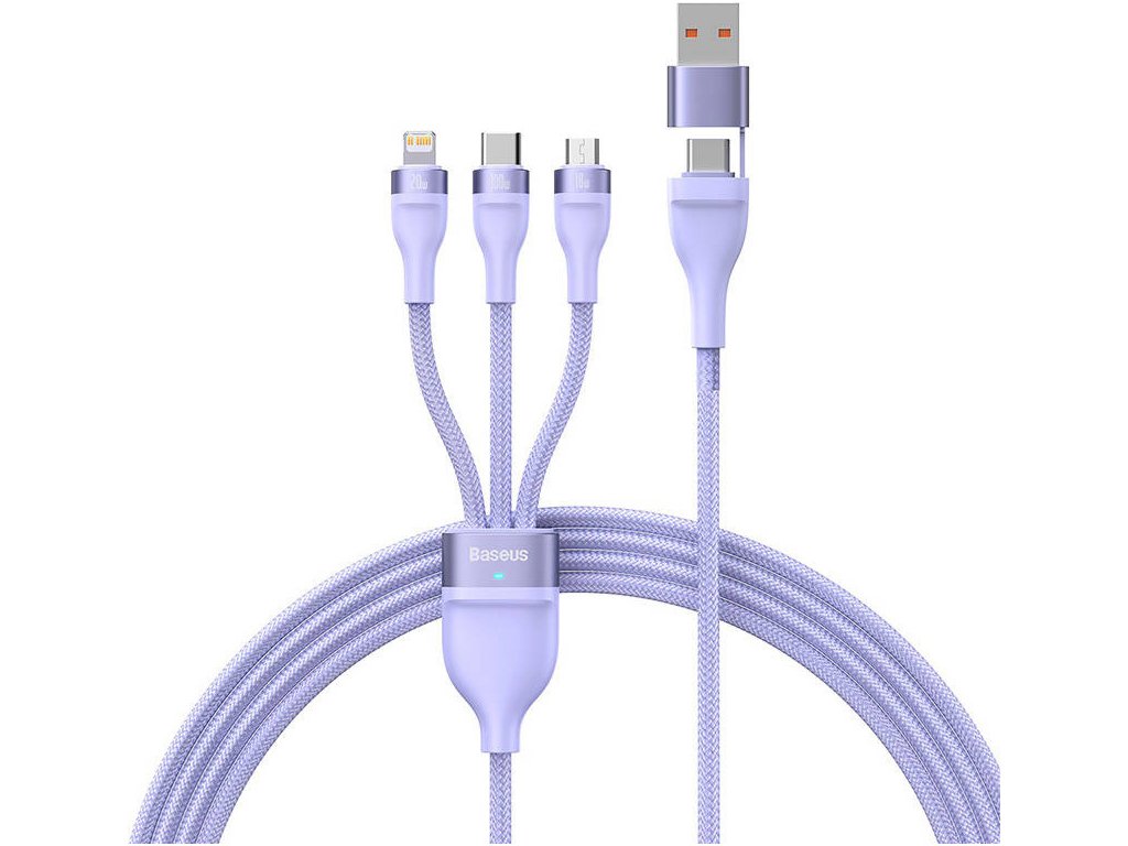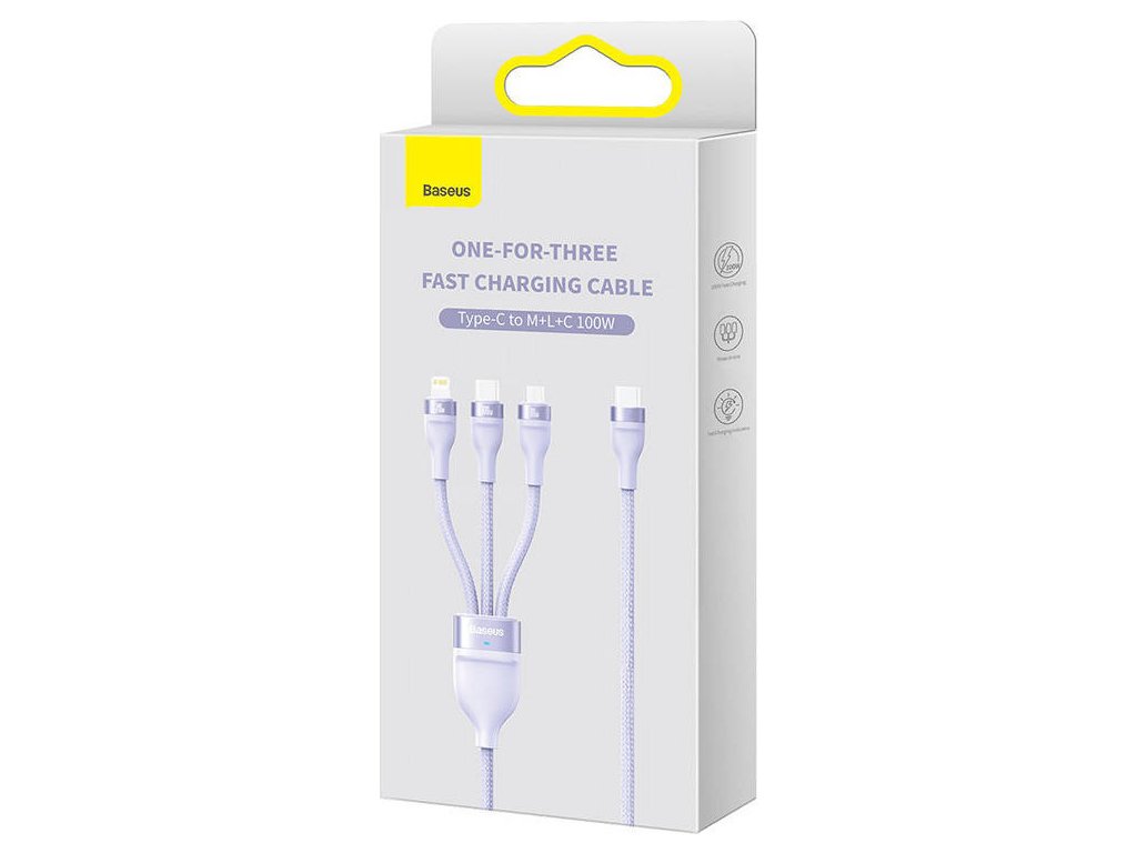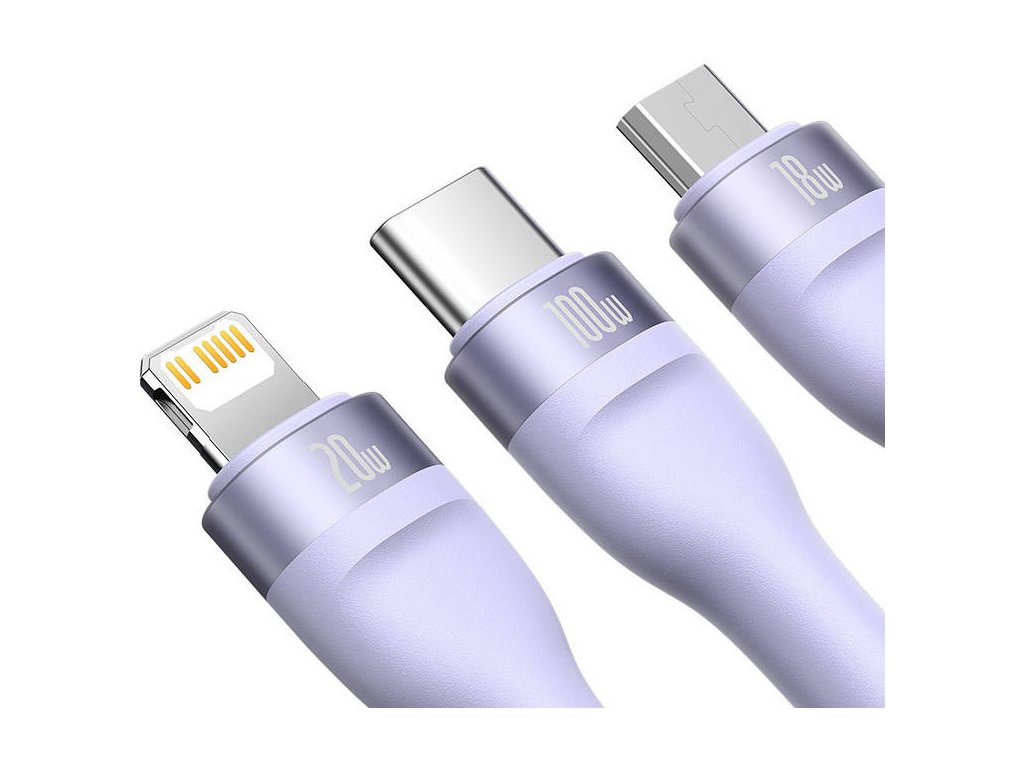 USB kábel 3v1 Baseus Flash Series 2, USB-C + micro USB + Lightning, 100 W, 1,5 m (fialový)