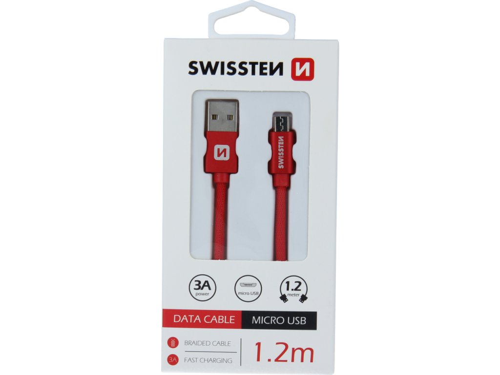 DÁTOVÝ KÁBEL SWISSTEN TEXTILE USB / MICRO USB 1,2 M ČERVENÝ