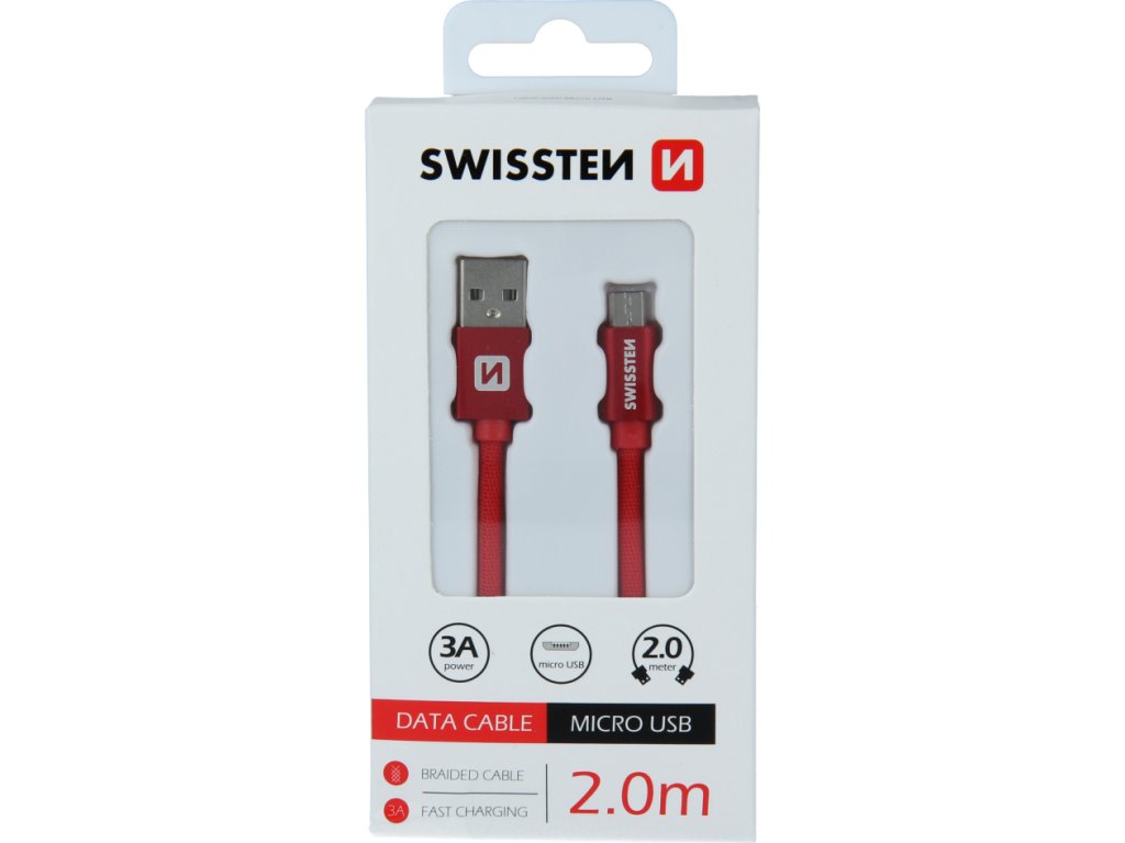 DÁTOVÝ KÁBEL SWISSTEN TEXTILE USB / MICRO USB 2,0 M ČERVENÝ