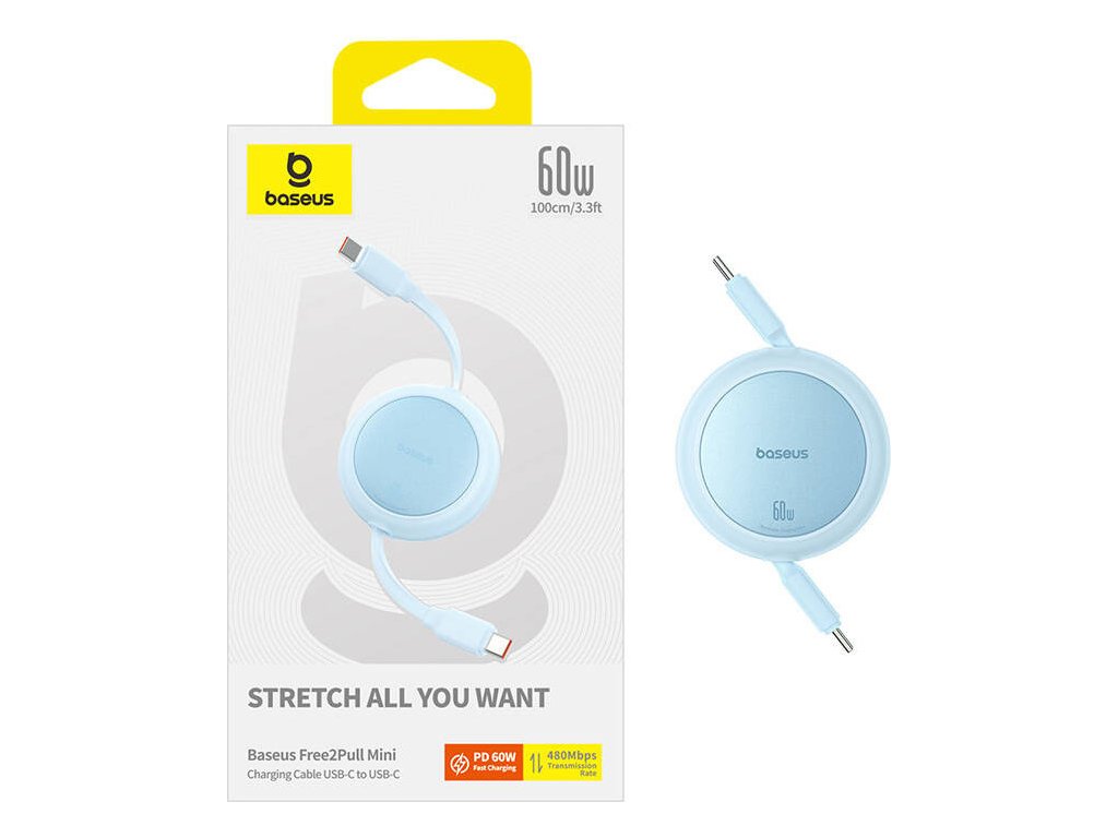 Baseus Free2Pull Mini USB-C na USB-C 60W USB kabel, 1 m (modrý)