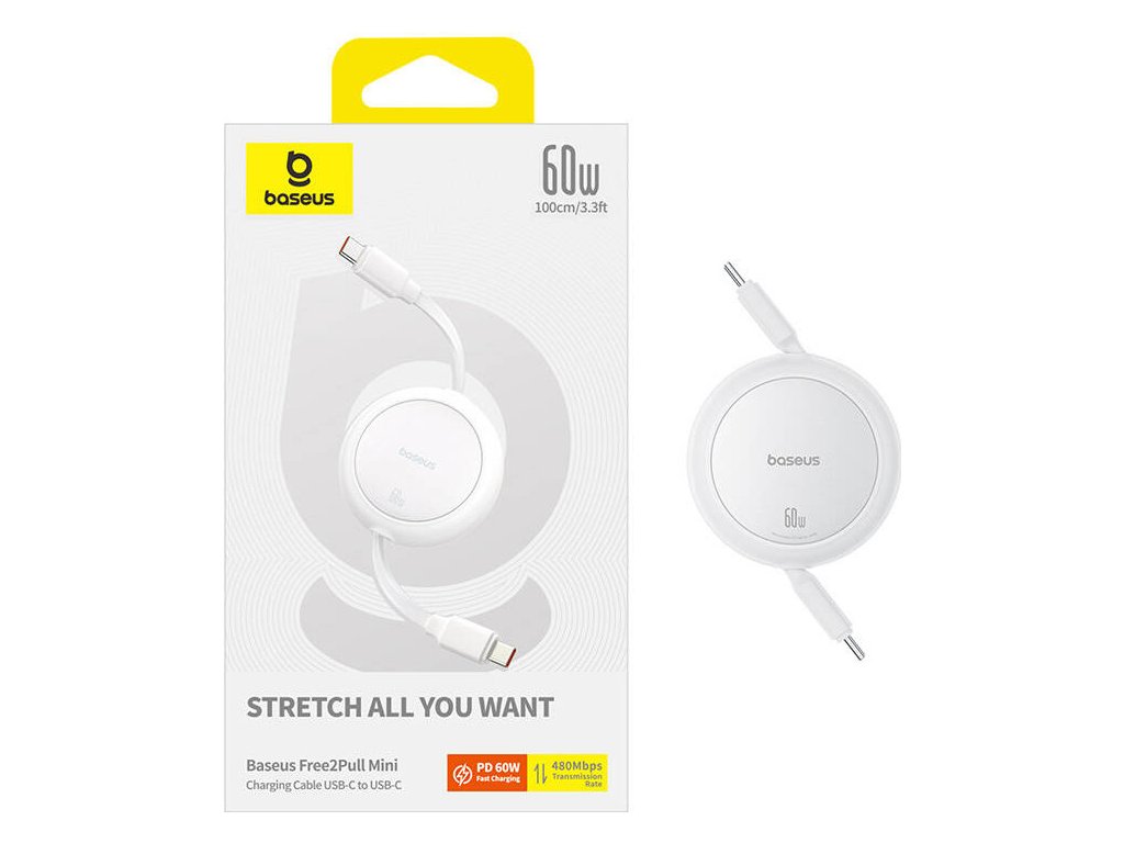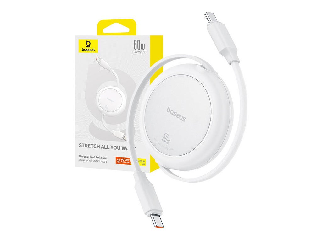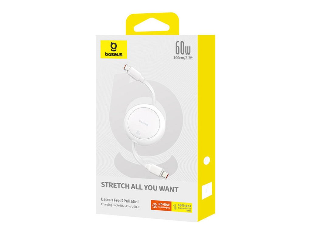 Baseus Free2Pull Mini USB-C na USB-C, 60W, 1, (biela) USB kábel.