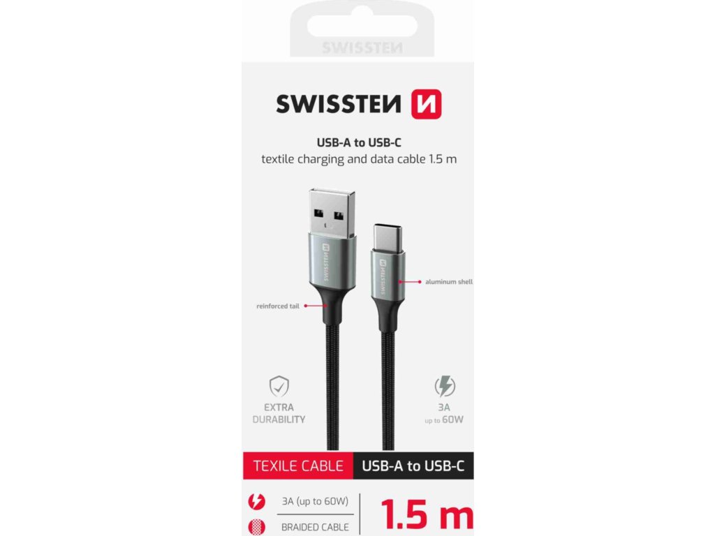 DÁTOVÝ KÁBEL SWISSTEN TEXTILE II USB / USB-C 1,5 M ČIERNY