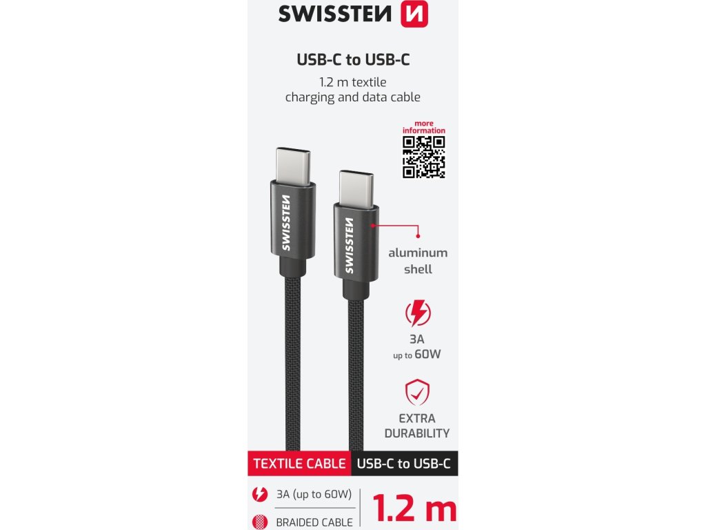 DÁTOVÝ KÁBEL SWISSTEN TEXTILE USB-C / USB-C 1,2 M ČIERNY
