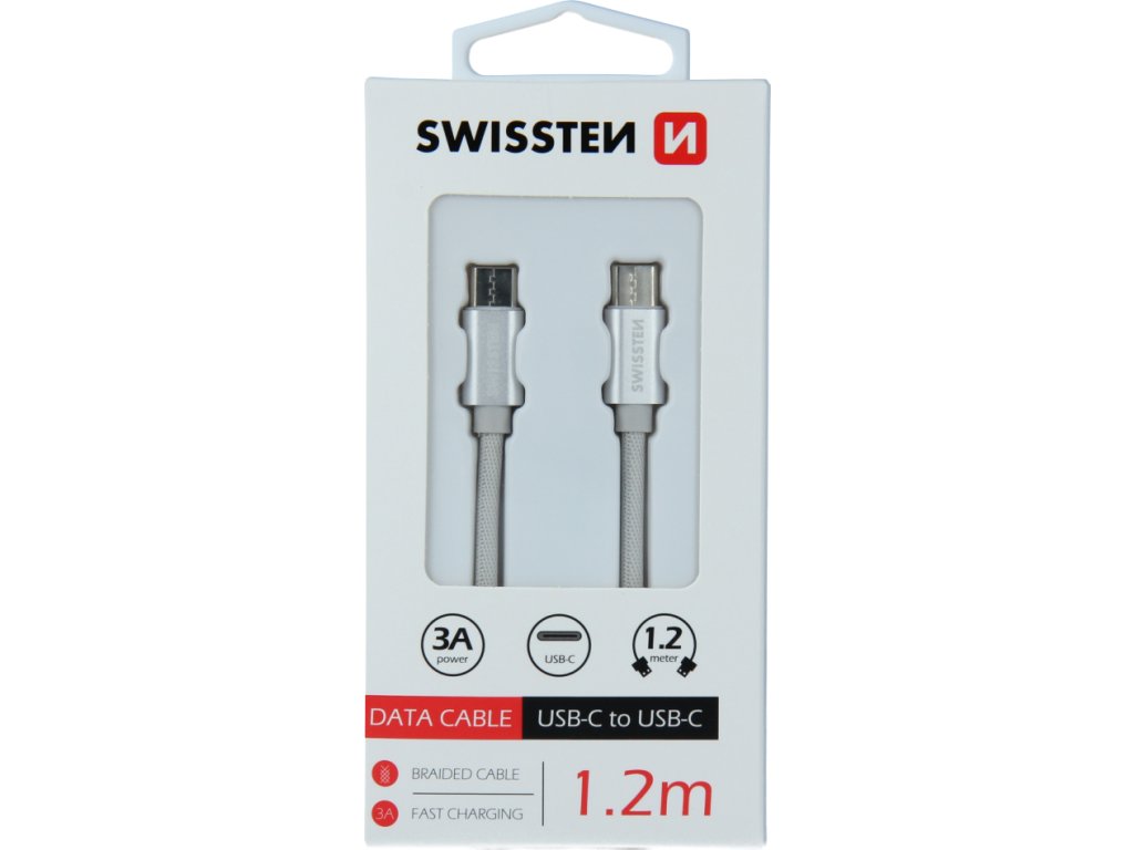 DÁTOVÝ KÁBEL SWISSTEN TEXTILE USB-C / USB-C 1,2 M STRIEBORNÝ