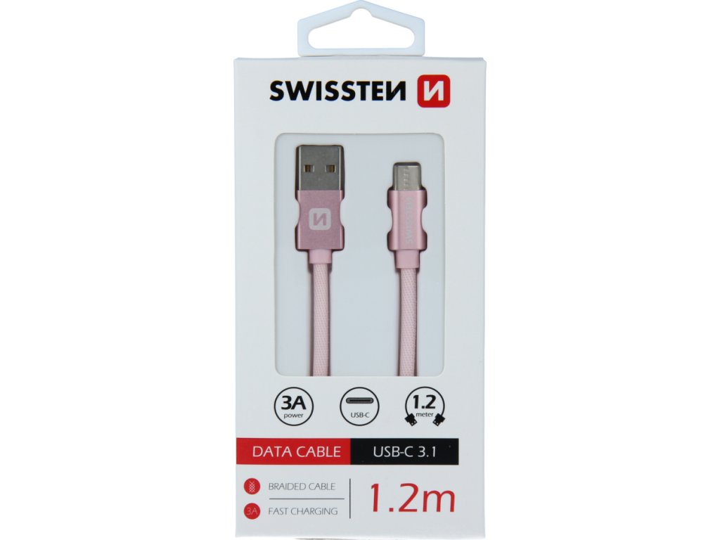DÁTOVÝ KÁBEL SWISSTEN TEXTILE USB / USB-C 1,2 M RUŽOVO/ZLATÝ