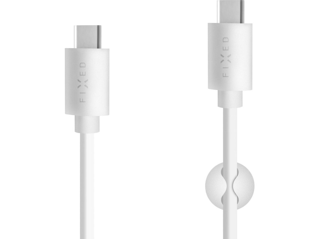 Dlhý dátový a nabíjací kábel FIXED s konektormi USB-C/USB-C a podporou PD, USB 2.0, 2 metre, 60W, biely