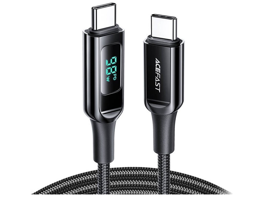 Kábel USB-C na USB-C Acefast C6-03 s displejom, 100 W, 2 m (čierny)