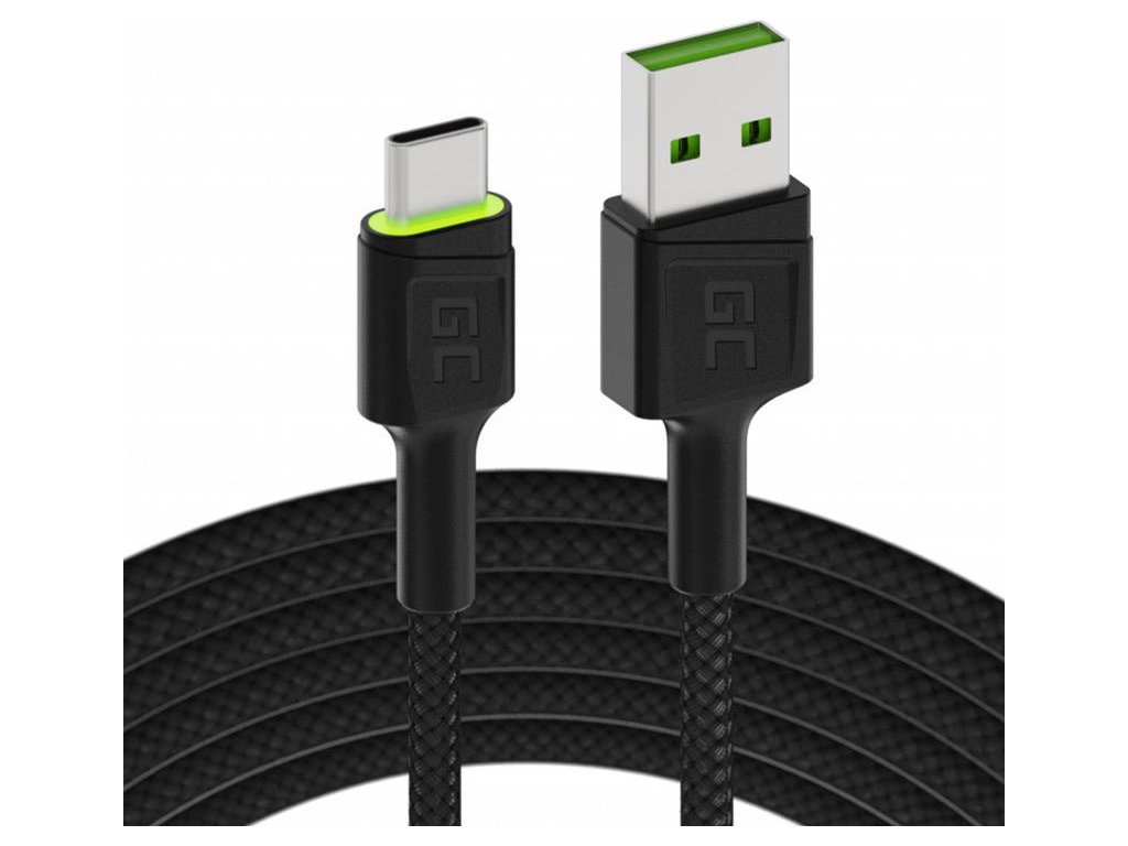 Kábel USB - USB-C Green Cell GC Ray, 120 cm, zelená LED, s funkciou Ultra Charge, QC 3.0