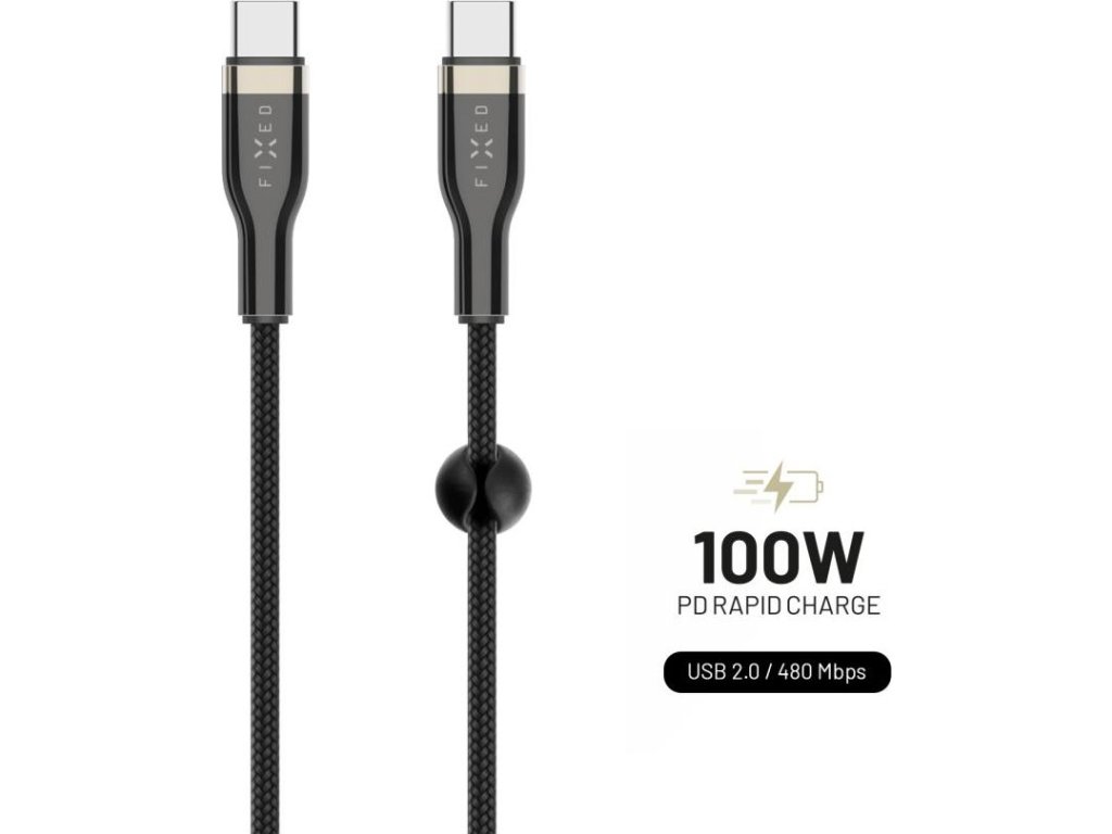 Prémiový kábel FIXED s obojstrannými konektormi USB-C a extra odolným ochranným opletením po celej svojej dĺžke. Ideálny doplnok na nabíjanie notebooku, tabletu, telefónu i ďalších zariadení výkonom až 100W a prenos hudby, fotografií a všetkých ďalších dát rýchlosťou 480 Mbps. Kábel je vyrobený z kvalitných materiálov, kovové konektory s dvojfarebnou galvanizáciou mu dodávajú luxusný vzhľad av kombinácii s ochranným opletením vydržia slúžiť násobne dlhšie ako klasické káble. V balení nájdete aj praktické doplnky - sťahovací pásik pre ľahký transport kábla a nalepovací organizér, ktorým zafixujete kábel na zvolenom mieste.