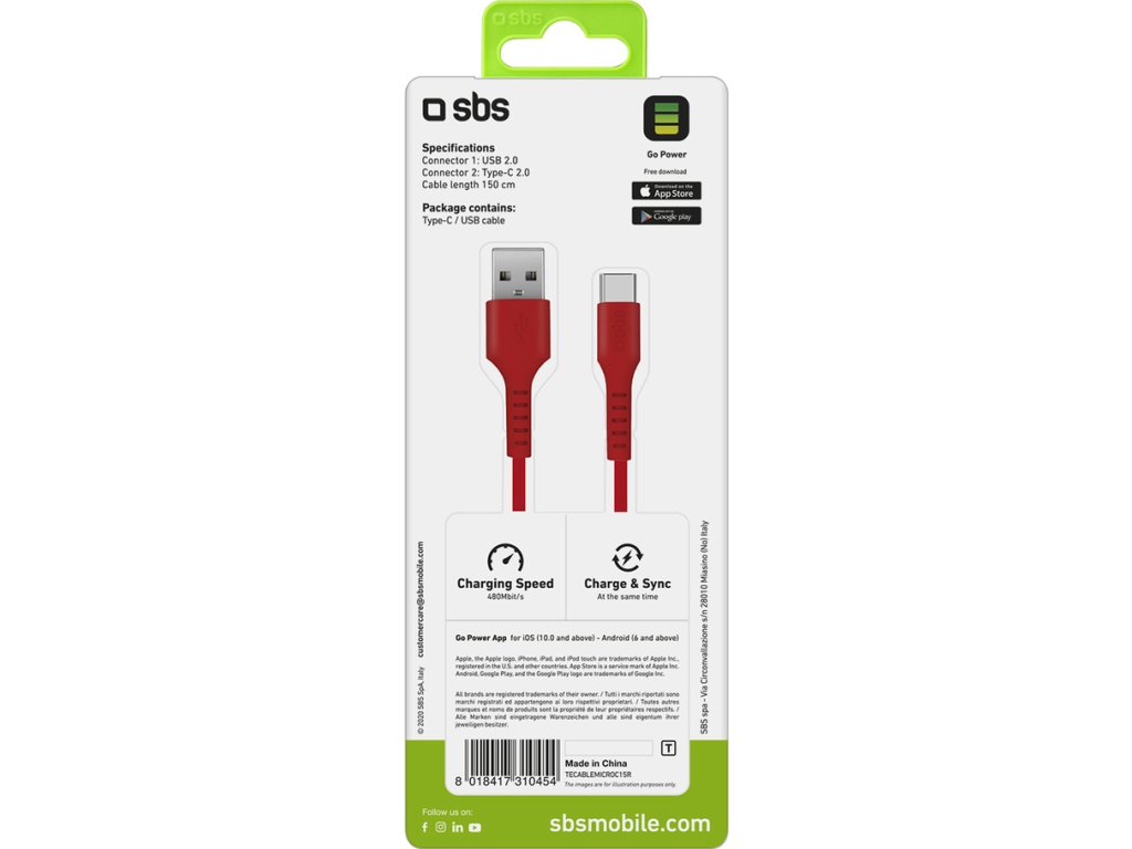 Kábel SBS TECABLEMICROC15R umožňuje nabíjanie aj synchronizáciu dát. To znamená, že môžete nabíjať zariadenie a prenášať súbory súčasne – ideálne pre každodenné použitie.
