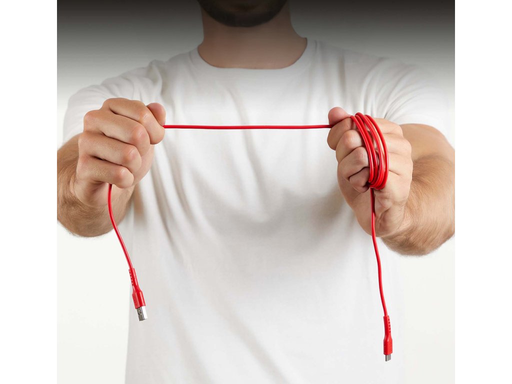 Pevná konštrukcia zaisťuje odolnosť a spoľahlivosť a intenzívna červená farba dodáva štýl a vďaka nej sa kábel ľahko nájde v taške alebo na stole.