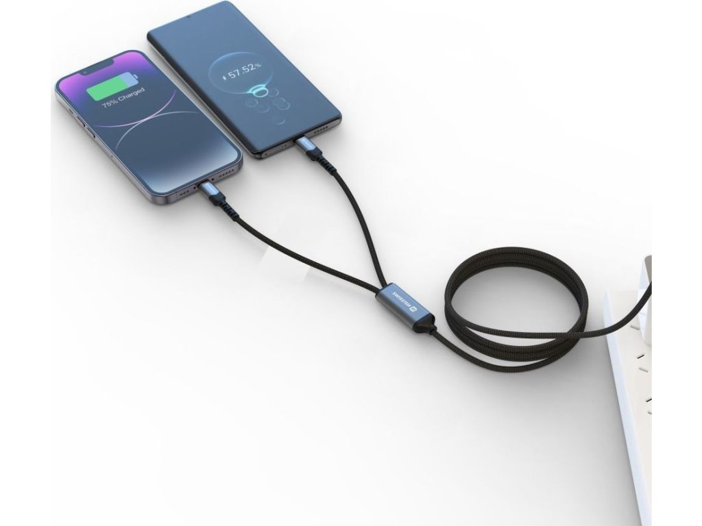 Hľadáte kvalitný 2v1 USB-C kábel, ktorý pri zapojení oboch zariadení zvládne dobíjať aj dvoch notebookov? Našli ste správne! SWISSTEN nabíjací kábel 2v1 USB-C/2x USB-C 100W 1,5 m je ideálnou voľbou pre rýchle a efektívne nabíjanie viacerých zariadení súčasne.
