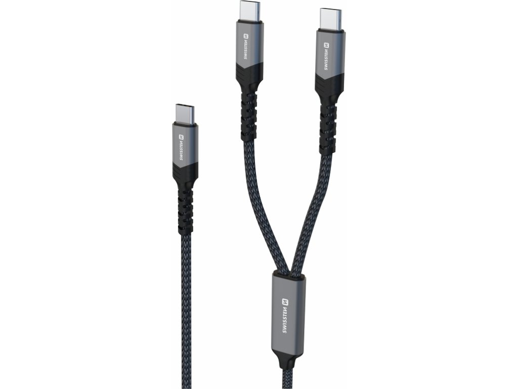 SWISSTEN NABÍJACÍ KÁBEL 2v1 100W USB-C / 2x USB-C 1,5 M ČIERNY