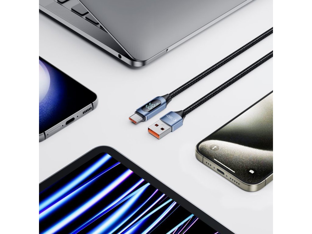 TECH-PROTECT ULTRABOOST LED TYPE-C CABLE 66W/6A 200CM BLUE