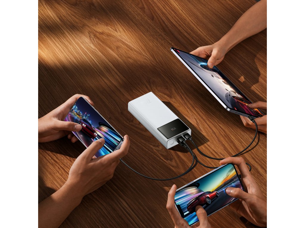 Vďaka trom výstupným portom (USB-C a 2× USB-A) môžete nabíjať viacero zariadení súčasne – telefón, slúchadlá a tablet bez toho, aby ste si museli vyberať.