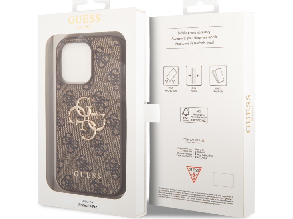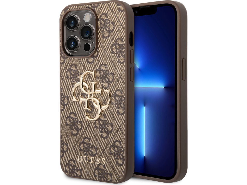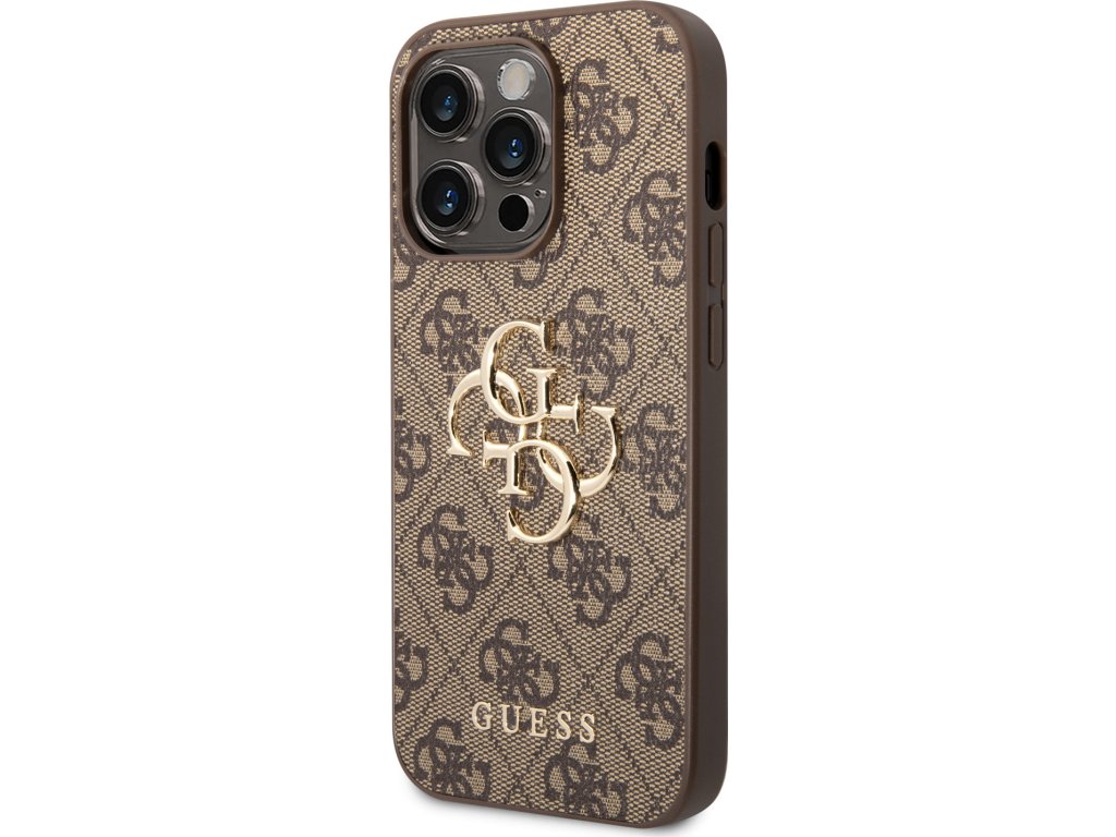 Guess PU 4G Metal Logo Zadný Kryt pre iPhone 15 Pro Brown