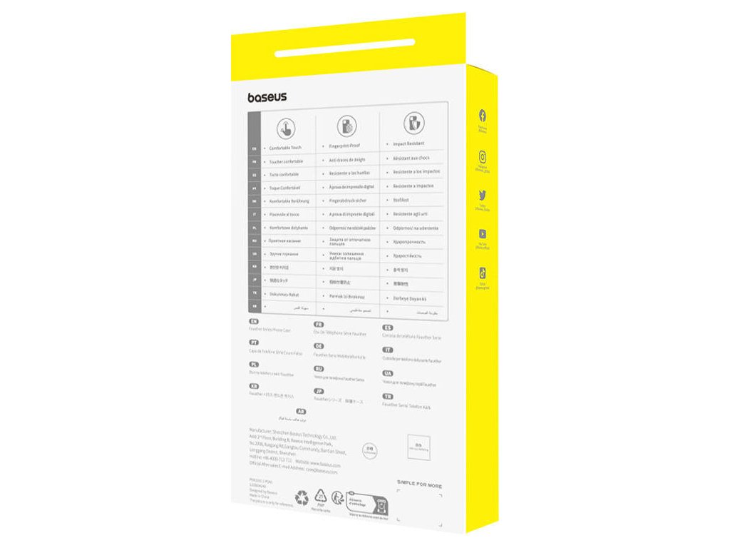 Puzdro Baseus sa vyznačuje tenkým prevedením - jeho hrúbka nepresahuje 2,5 mm. Vďaka tomu môžete svoj iPhone pohodlne používať. Materiál, z ktorého je vyrobené, je navyše príjemný na dotyk a šetrný k životnému prostrediu. Výrezy umožňujú voľné používanie telefónu a mäkká podšívka poskytuje dodatočnú ochranu.