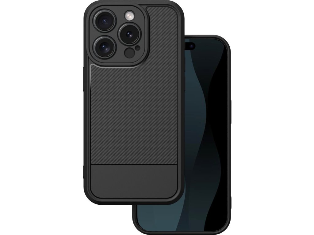Karbónový kryt na iPhone 15 Pro zo série Carbon Case v čiernej farbe Séria puzdier Carbon Case je vyrobená z termoplastického a odolného materiálu, ktorý imituje brúsený kov a karbón.