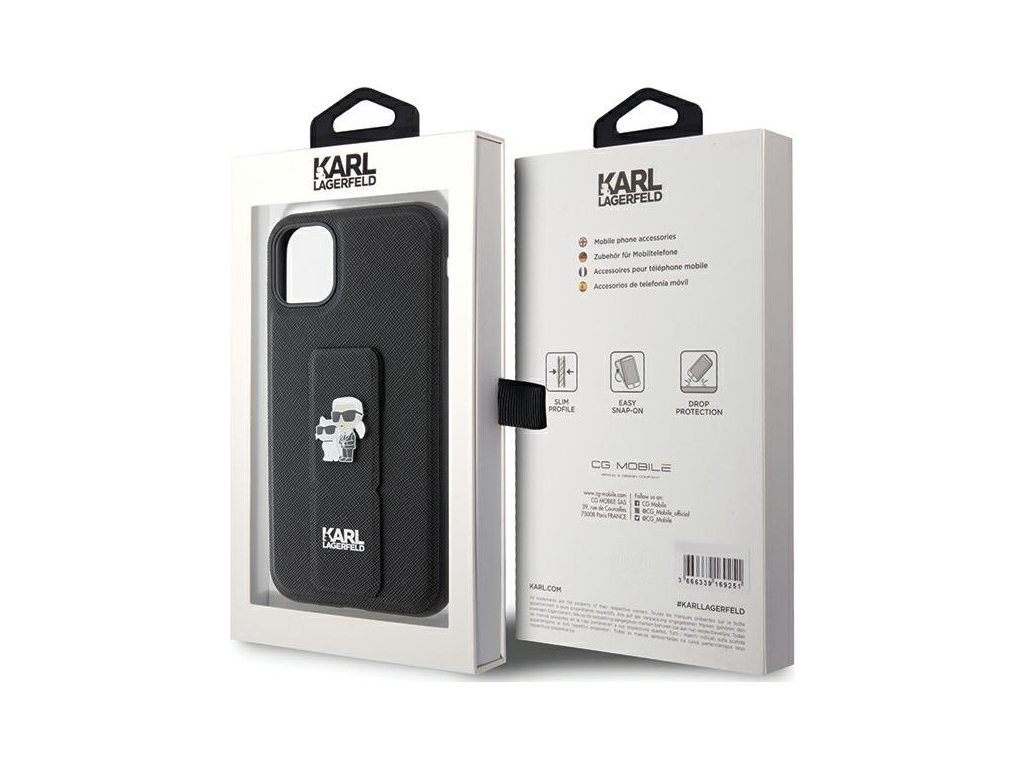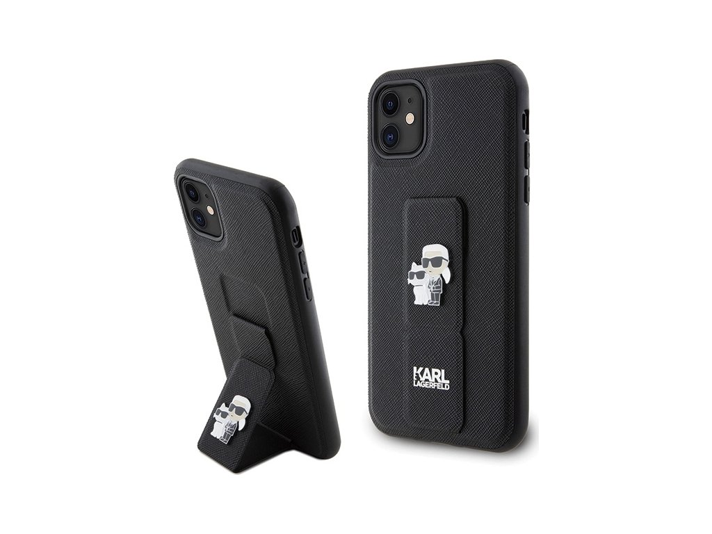Pouzdro Karl Lagerfeld pro iPhone 11 KLHCN61GSAKCPK černé HC GRIPSTAND SAFFIANO KC PINS