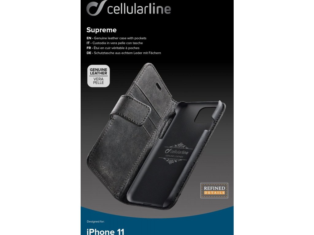 Prémiové kožené puzdro typu kniha Cellularine Supreme pre Apple iPhone 11, čierne