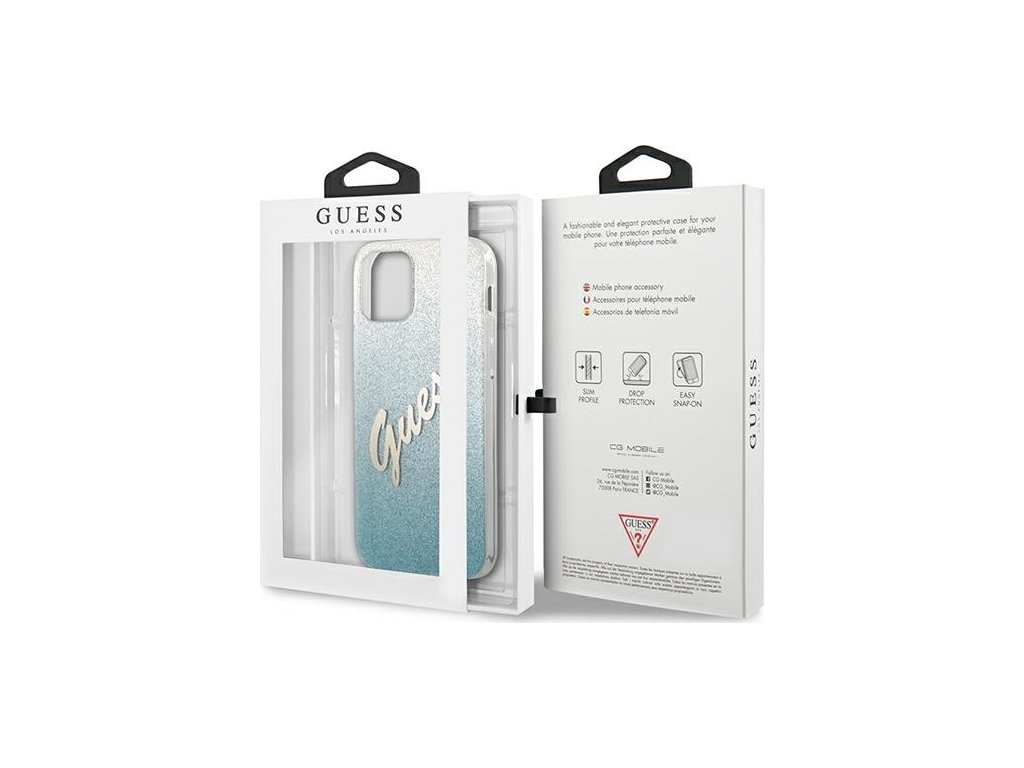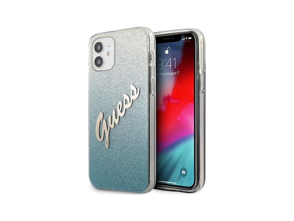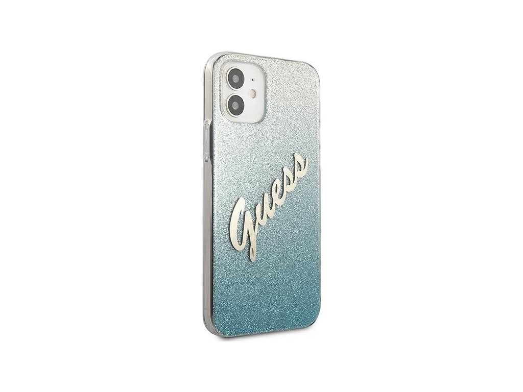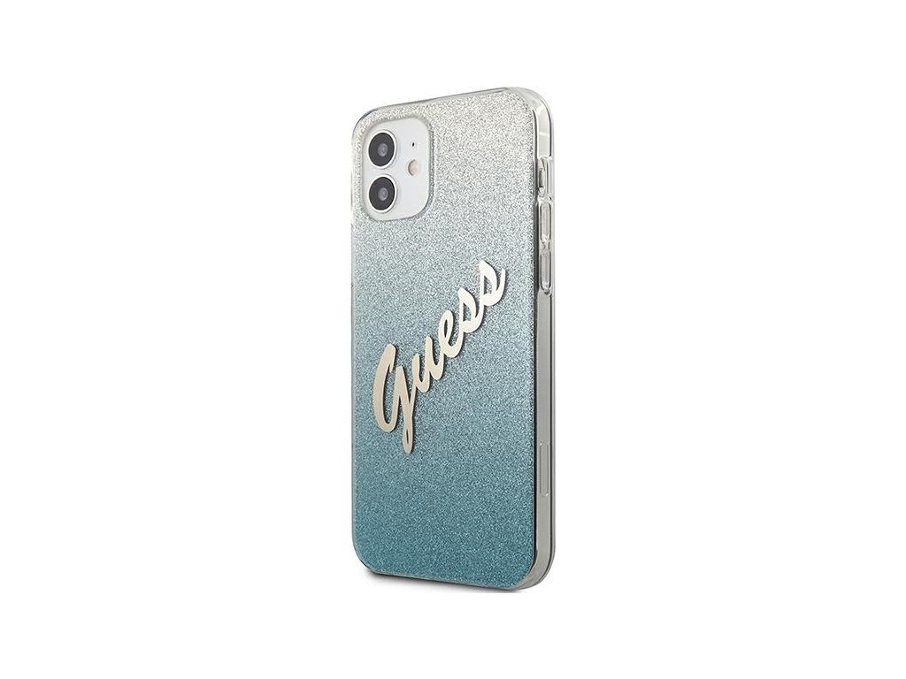 Guess GUHCP12SPCUGLSBL pevný kryt pre iPhone 12 mini 5,4" modro/modrý s trblietavým gradientným písmom