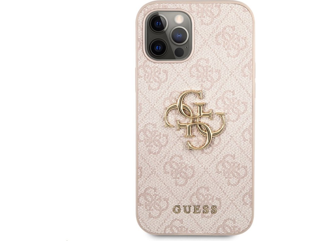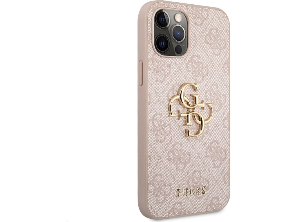 Guess PU 4G Metal Logo Zadný Kryt pre iPhone 12/12 Pro Pink