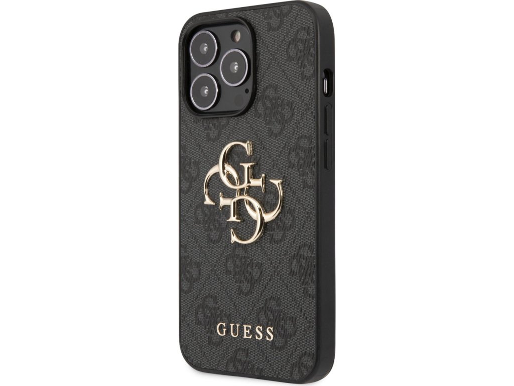 Guess PU 4G Metal Logo Zadný Kryt pre iPhone 13 Pro Grey