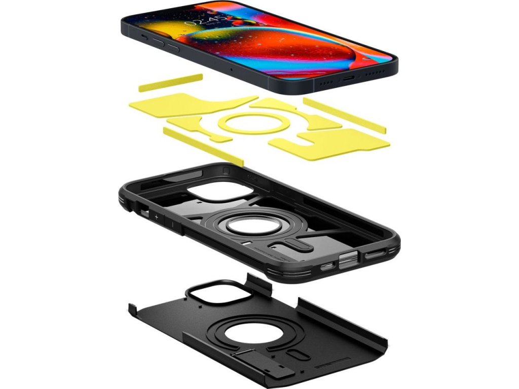 Pevné puzdro Armor Mag značka Spigen je vylepšenou verziou svojho predchodcu. Puzdro je vybavené magnetickým krúžkom kompatibilným s montážnym systémom a bezdrôtovým nabíjaním MagSafe, zaisťujúcim rýchle a jednoduché použitie technológie Apple.