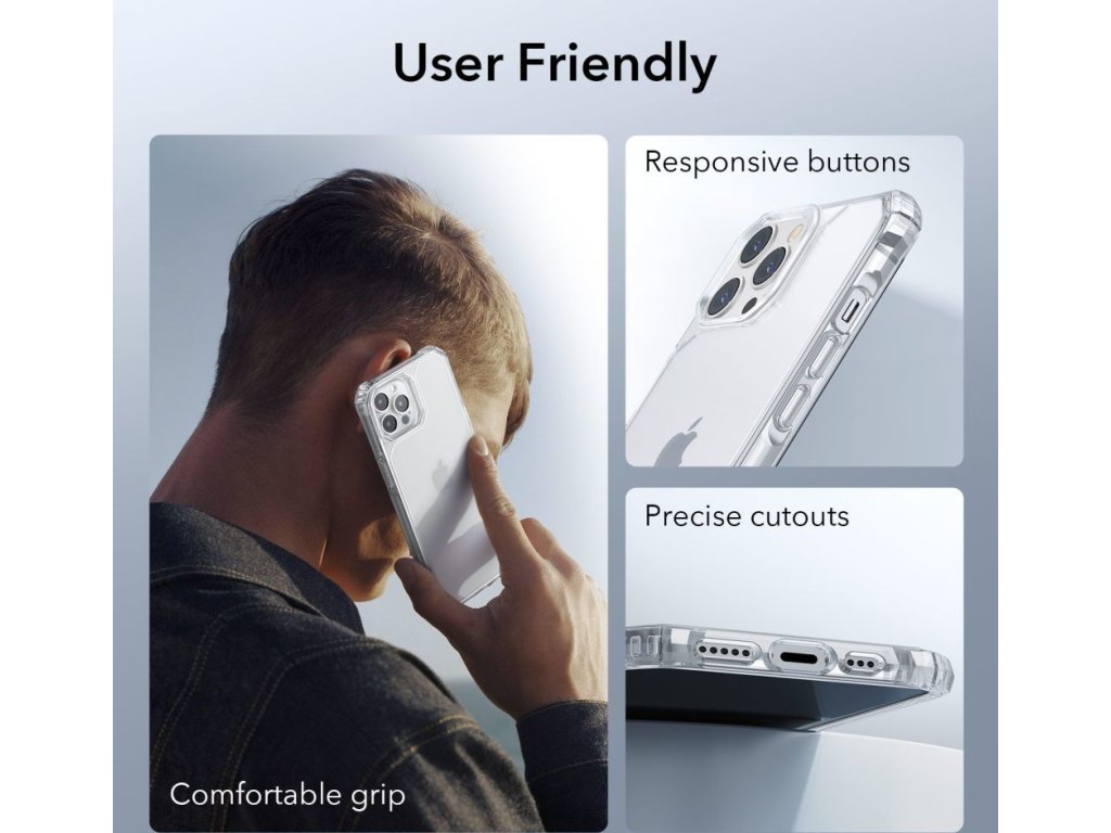 Jednodielne puzdro ESR Air Armor skladajúce sa z tuhej, priehľadnej zadnej časti a pružného okolo rámu z termoplastického mäkkého materiálu, ktorý navyše chráni zariadenie pred poškodením.
