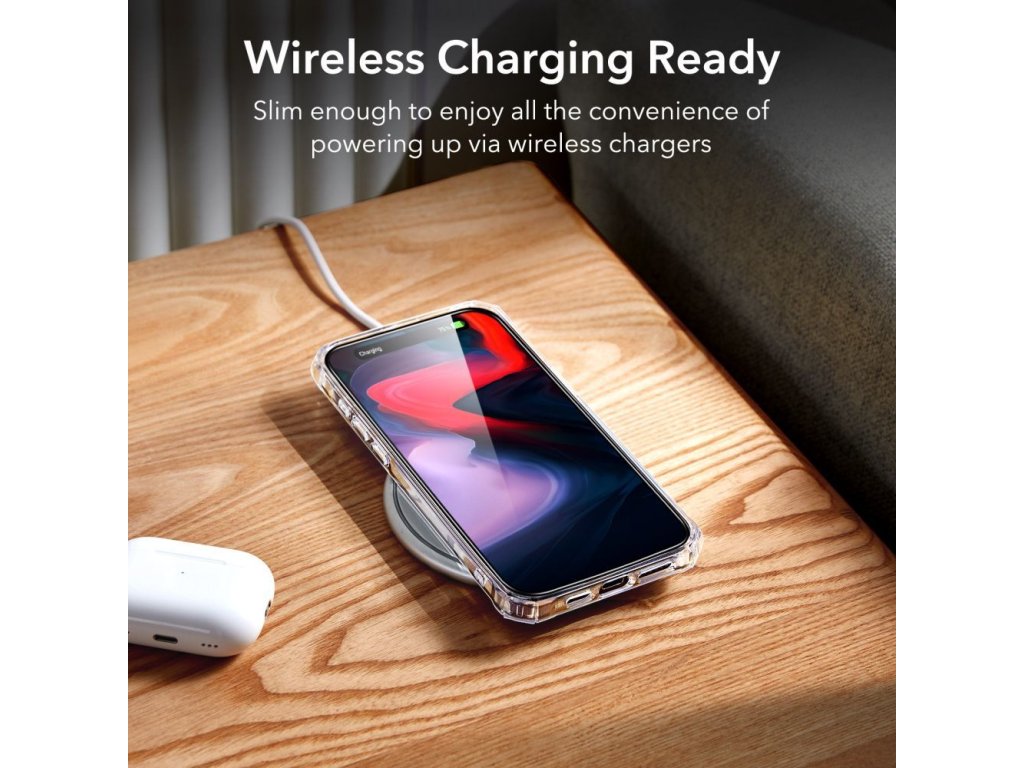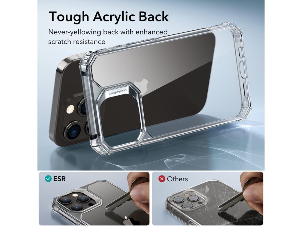 Jednodielne puzdro ESR Air Armor skladajúce sa z tuhej zadnej časti a pružného rámu okolo, vyrobeného z termoplastického mäkkého materiálu, ktorý navyše chráni zariadenie pred poškodením.