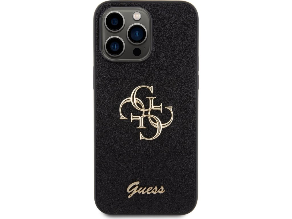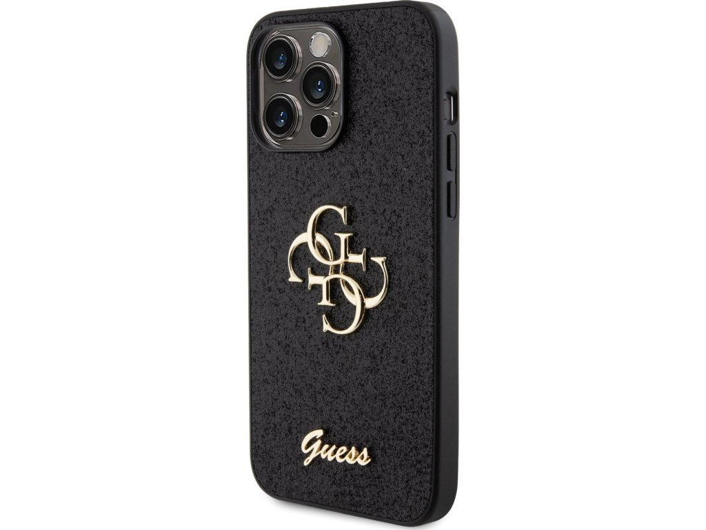 Guess PU Fixed Glitter 4G Metal Logo Zadný Kryt pre iPhone 15 Pro Max Black