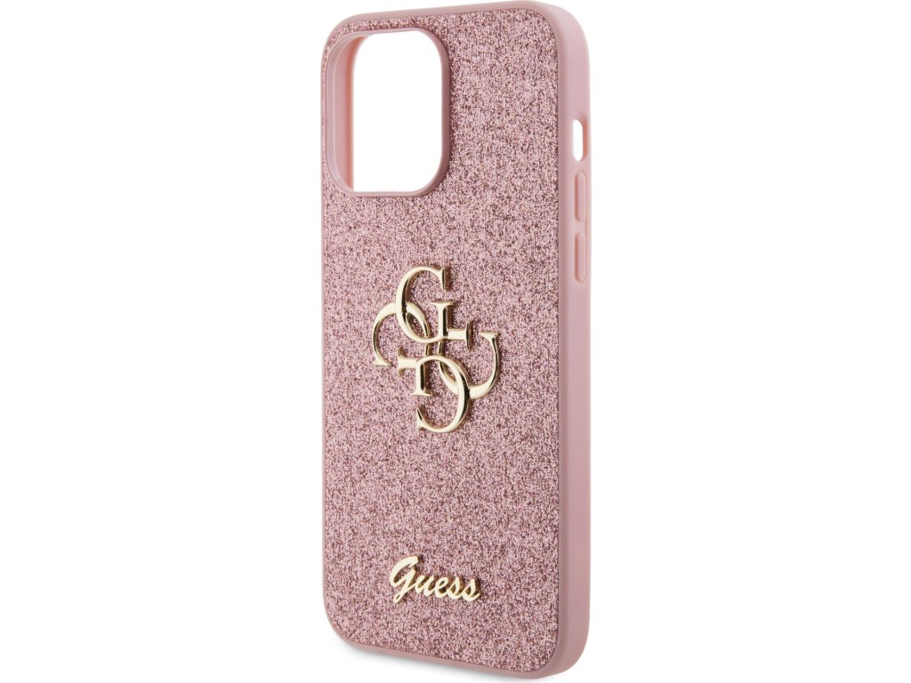 Guess PU Fixed Glitter 4G Metal Logo Zadný Kryt pre iPhone 15 Pro Max Pink