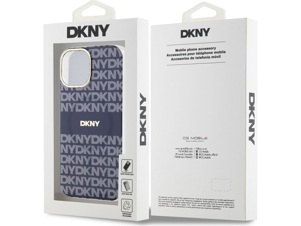 DKNY PC/TPU Repeat Pattern Tonal Stripe Magsafe Zadný Kryt pre iPhone 15 Blue
