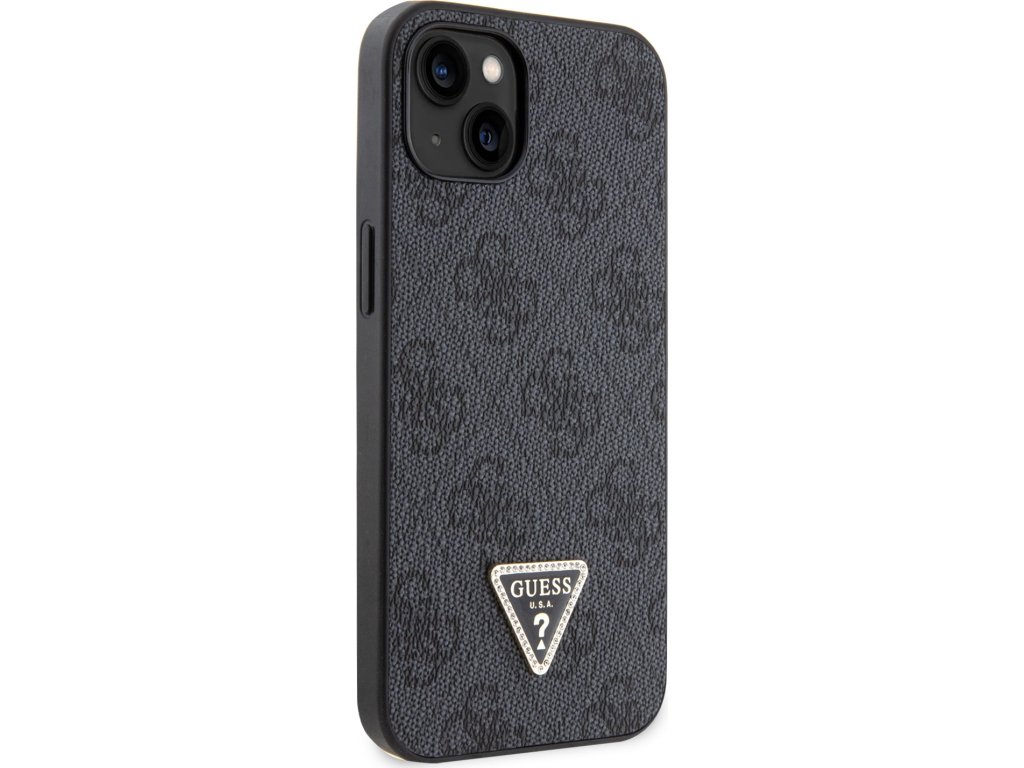 Guess PU 4G Strass Triangle Metal Logo Zadný Kryt pre iPhone 15 Black